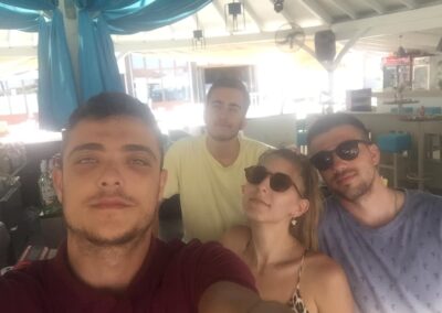 Komitsa Beach is sandy, and somewhat coarse sand is in the water and on the coast. The depth is gradual, and the sea is crystal clear and transparent.
